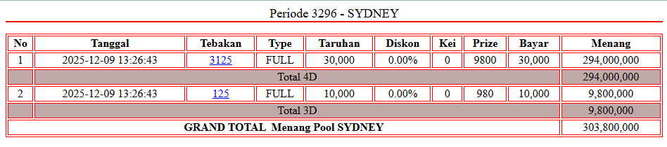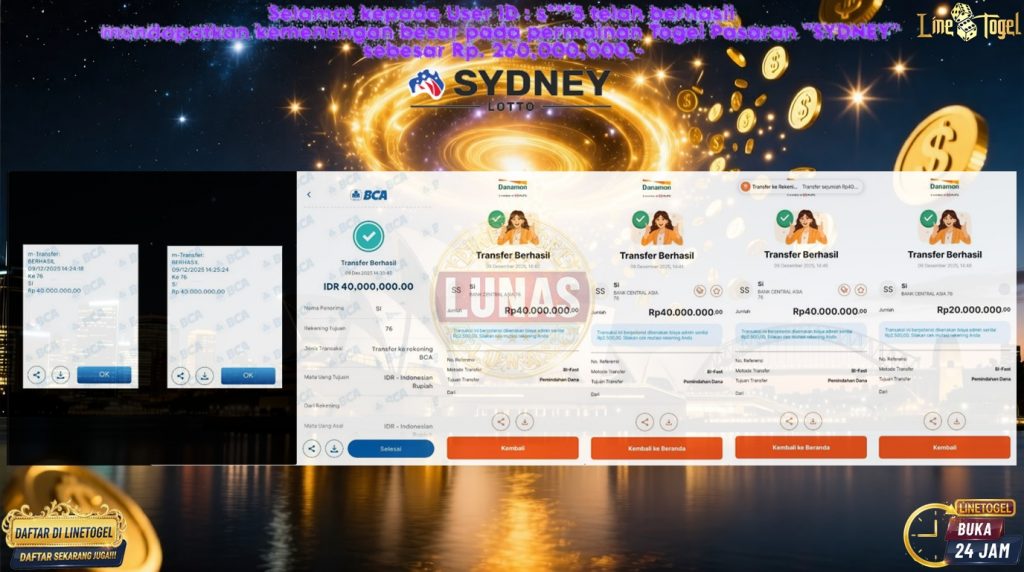 Selamat kepada User ID : s***5 telah berhasil mendapatkan kemenangan besar pada permainan Togel Pasaran “SYDNEY” sebesar Rp. 260,000,000,-